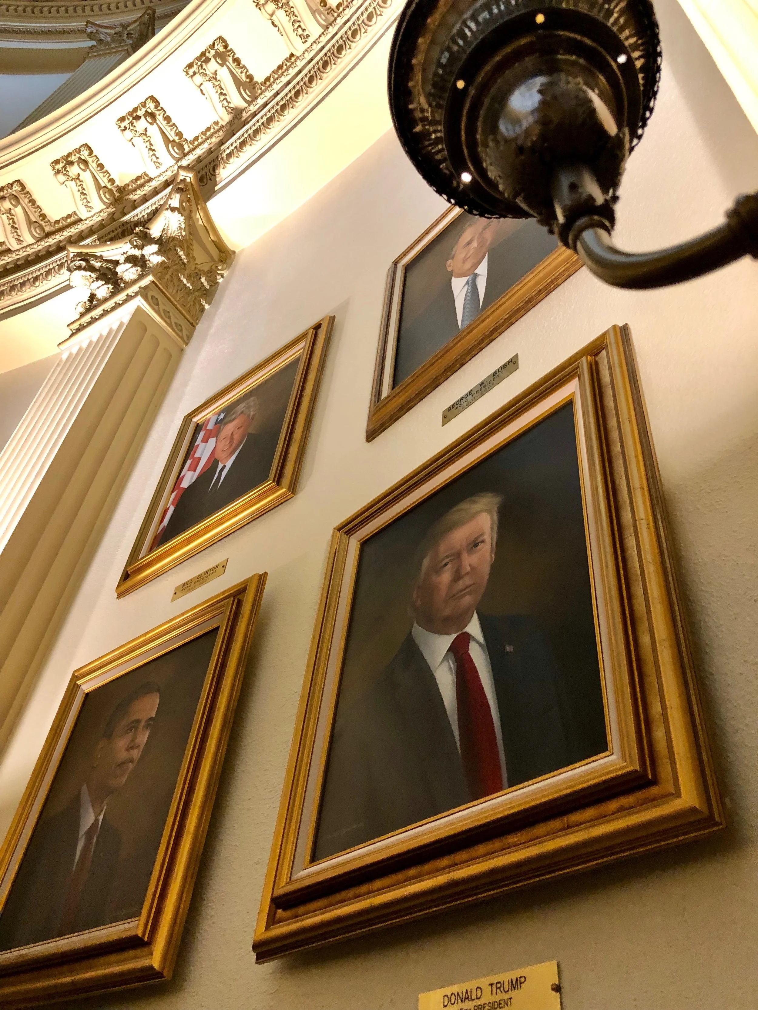Der Republikaner Kevin Grantham trieb in der folgenden Woche in Rekordgeschwindigkeit die nötigen Spendengelder für das Trump Portrait ein. Vergangene Woche wurde es aufgehängt. Grantham sagte auf der Einweihungsfeier: “Egal, ob Ihnen das Bild ein Lächeln ins Gesicht zaubert oder ihren Blick verfinstern lässt. Vergessen Sie nie, dass beide Reaktionen legal sind. Denn Sie leben in den Vereinigten Staaten von Amerika.”